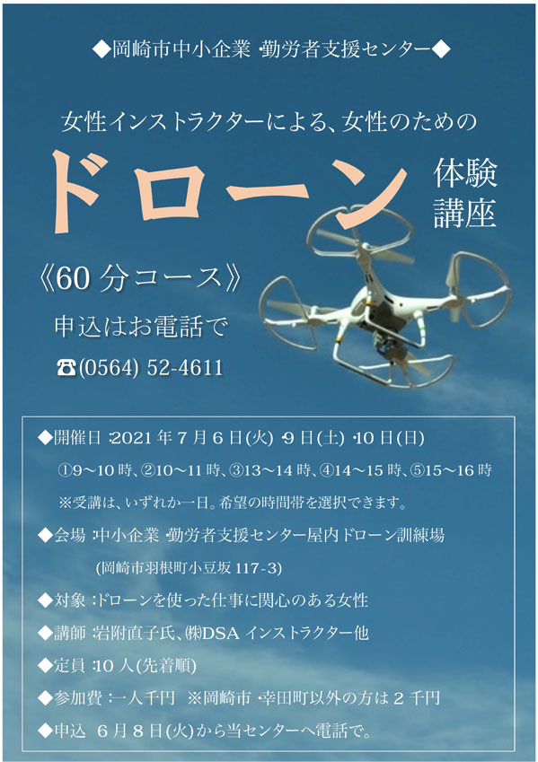 4月から開催をしているドローン操縦体験会に日にち限定で女性インストラクターから教えてもらえる。女性のためのドローン体験講座を開催いたします。
